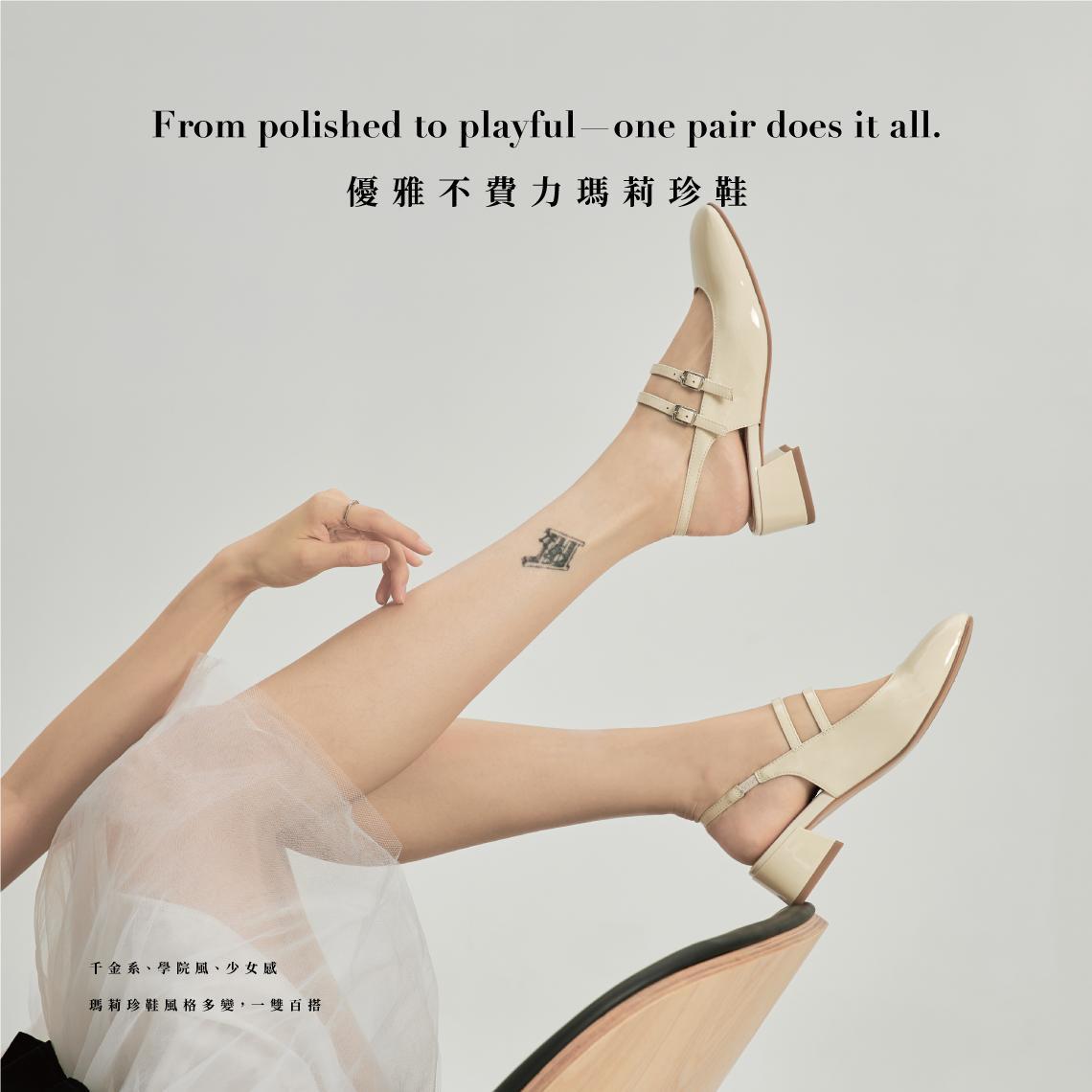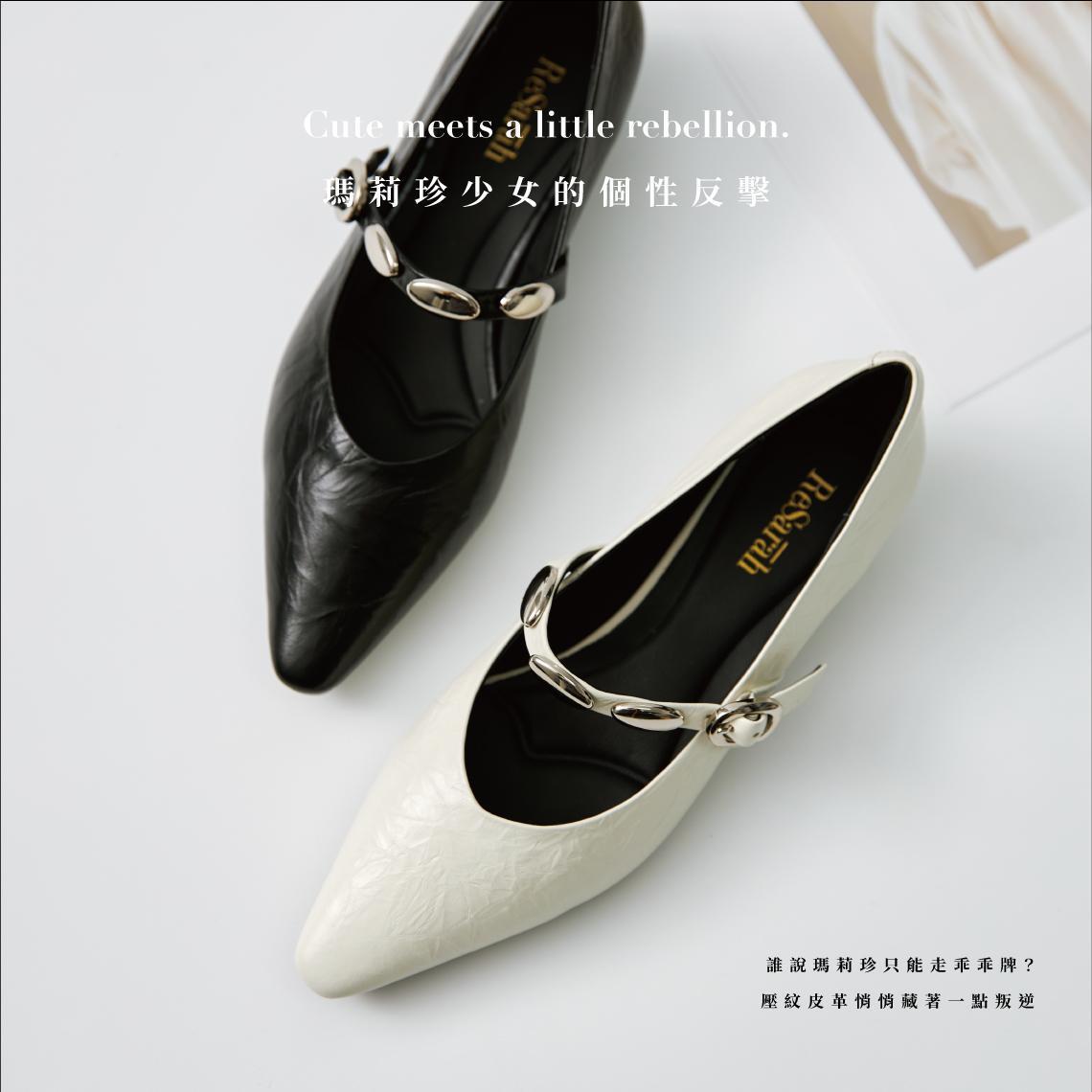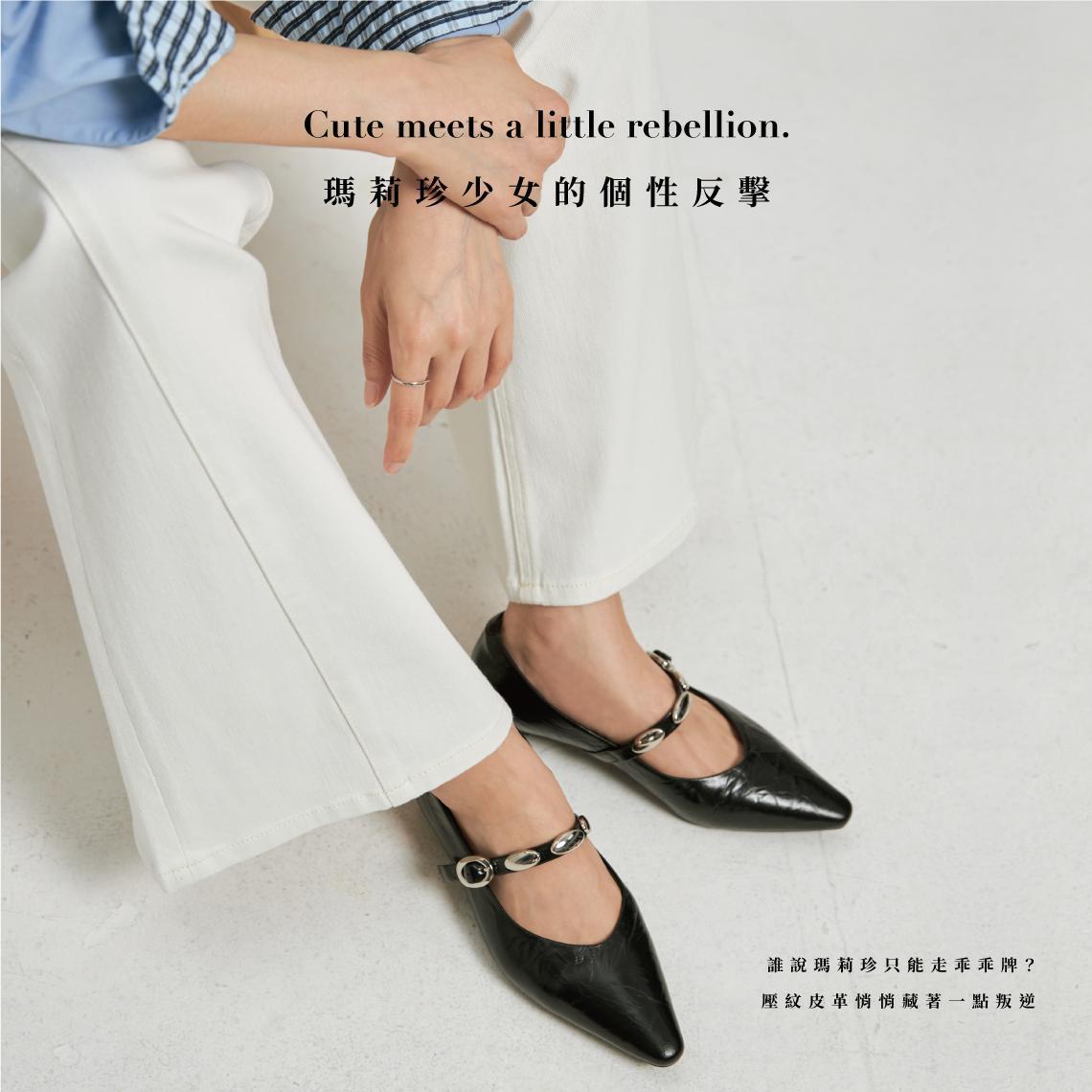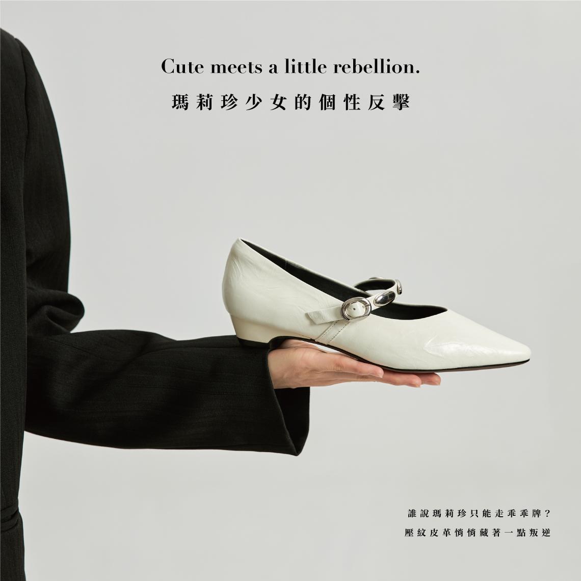 乖女孩反擊-壓紋銀扣瑪莉珍-壓紋白