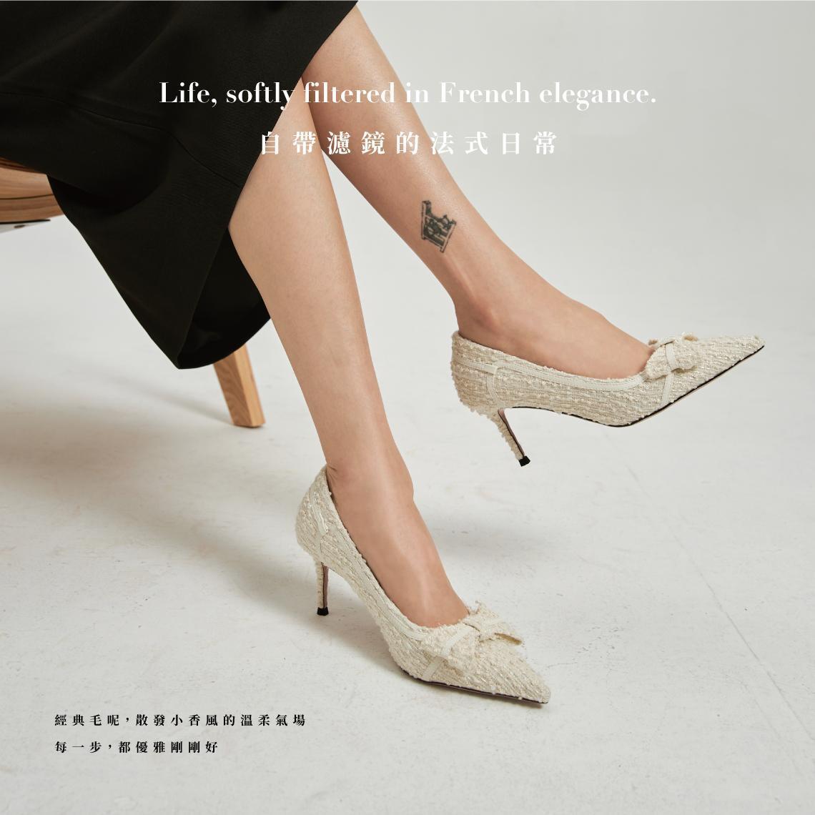 法式日常濾鏡-小香風跟鞋-毛呢灰