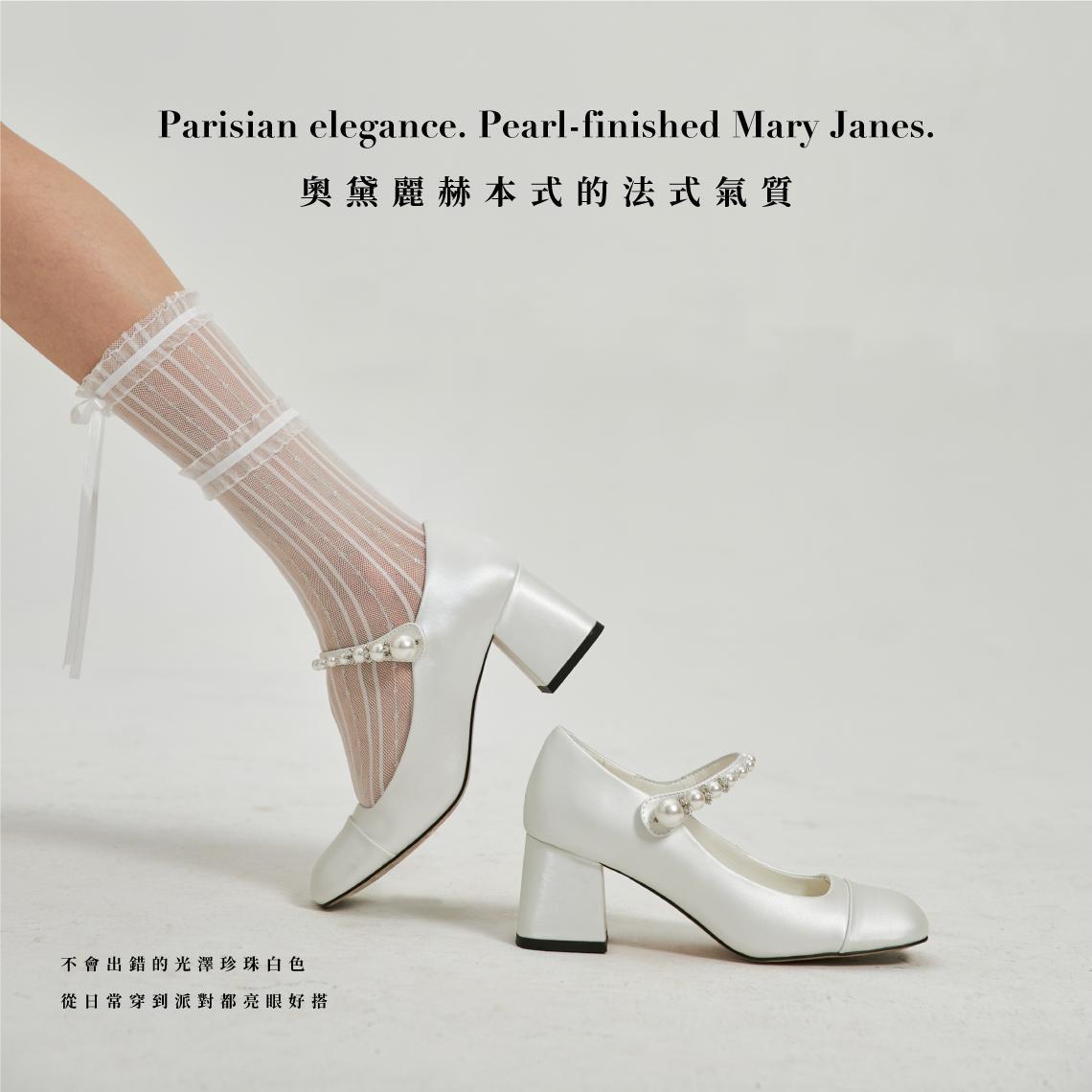 學院風打底-珍珠鏈瑪莉珍鞋-光澤白