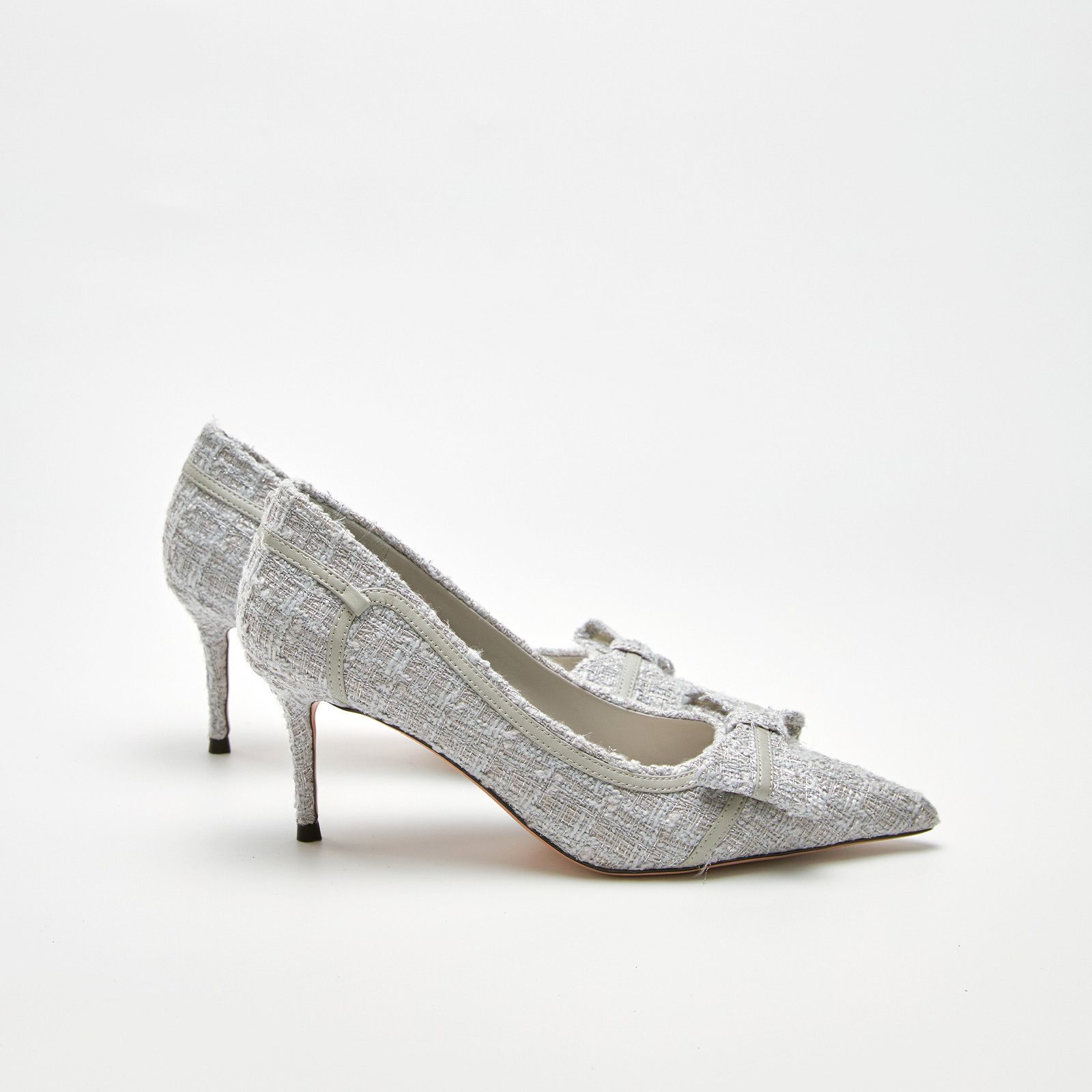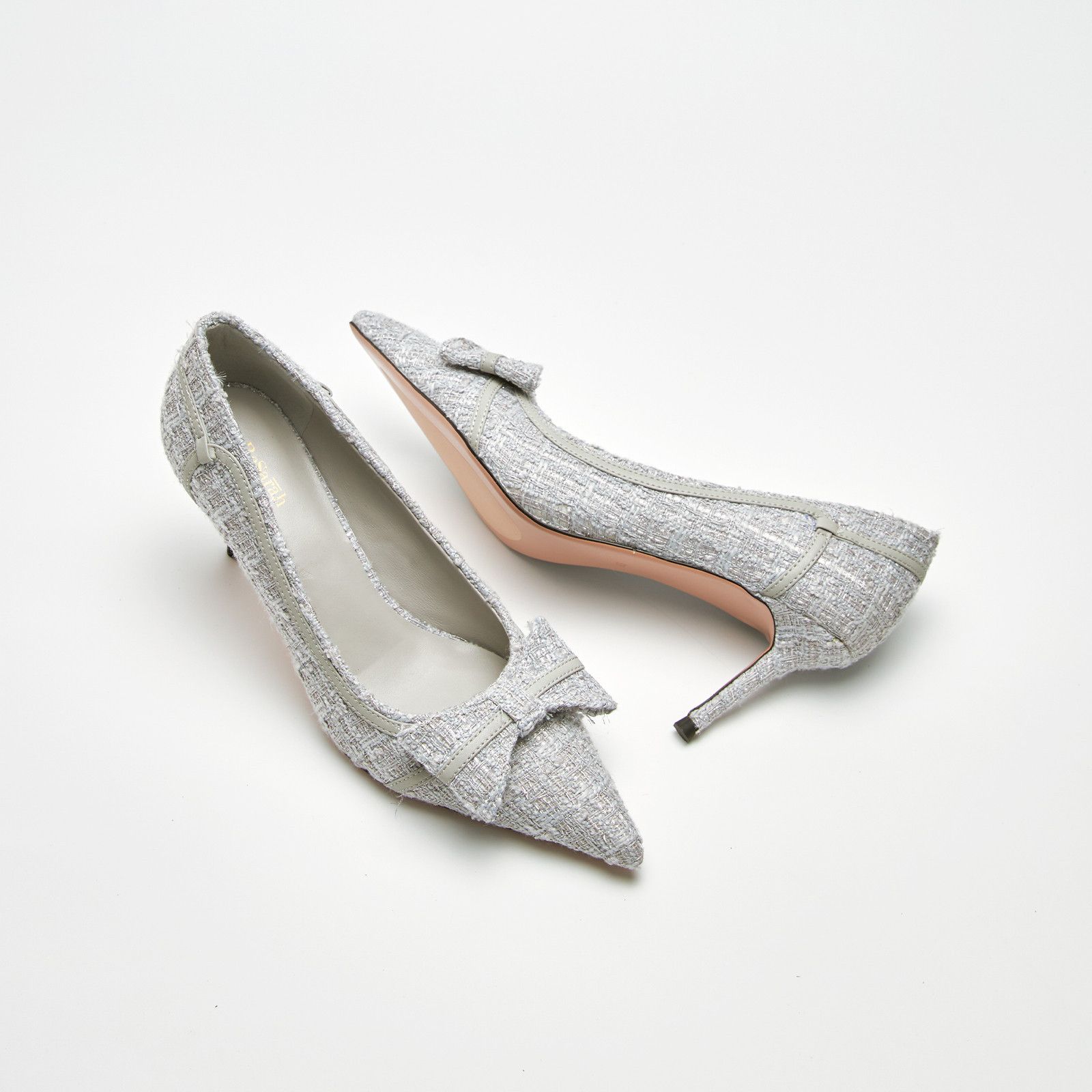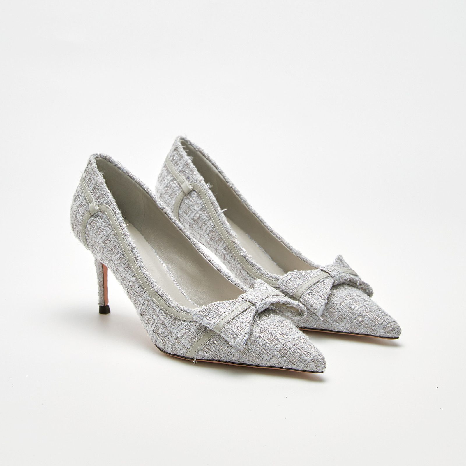 法式日常濾鏡-小香風跟鞋-毛呢灰