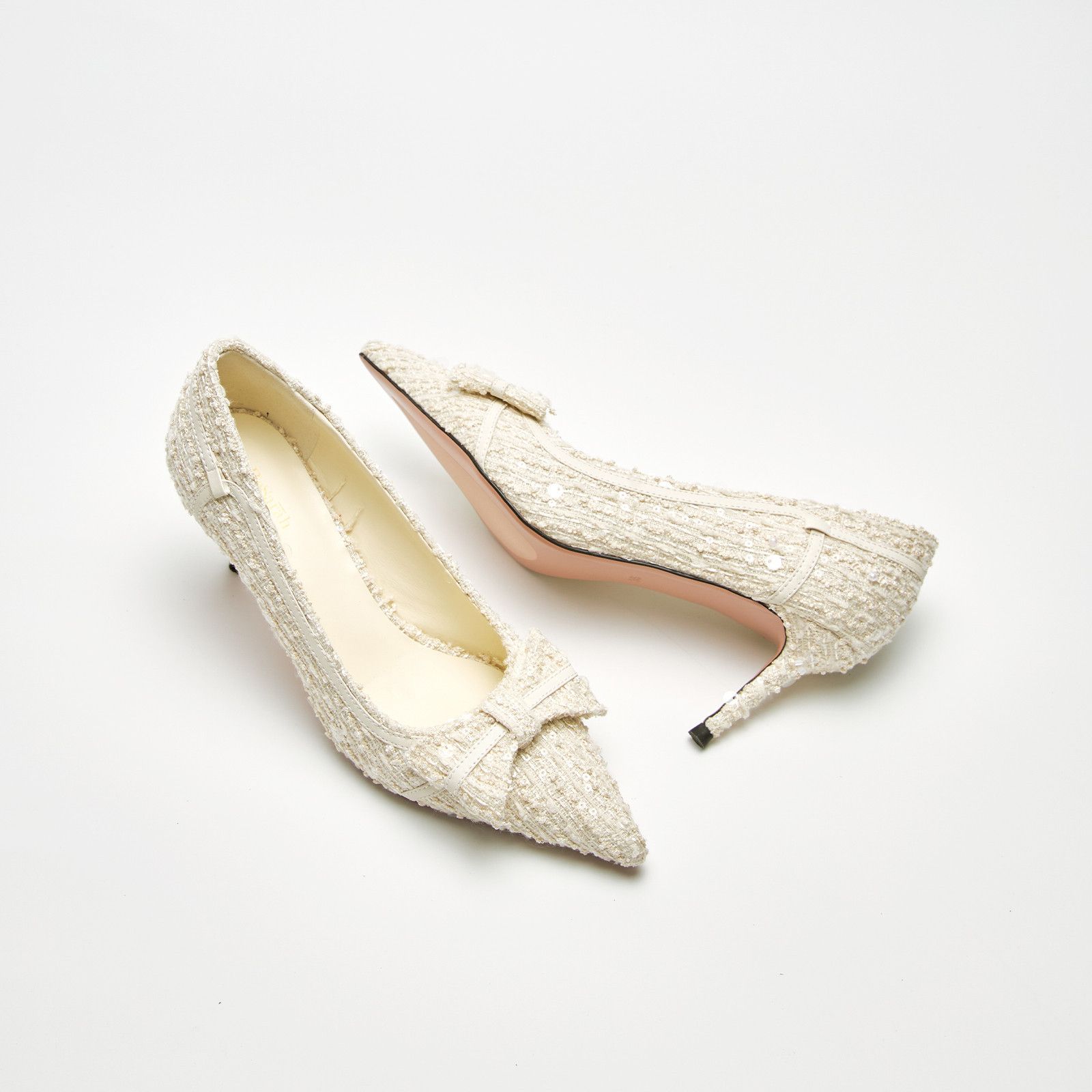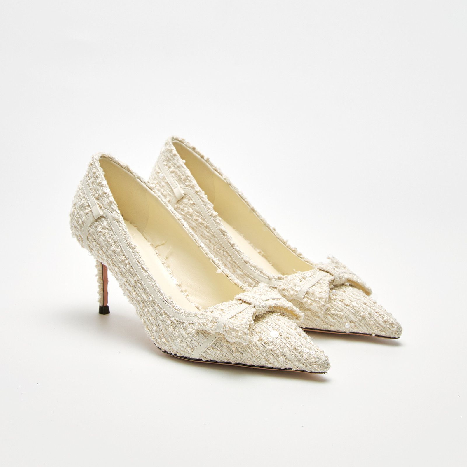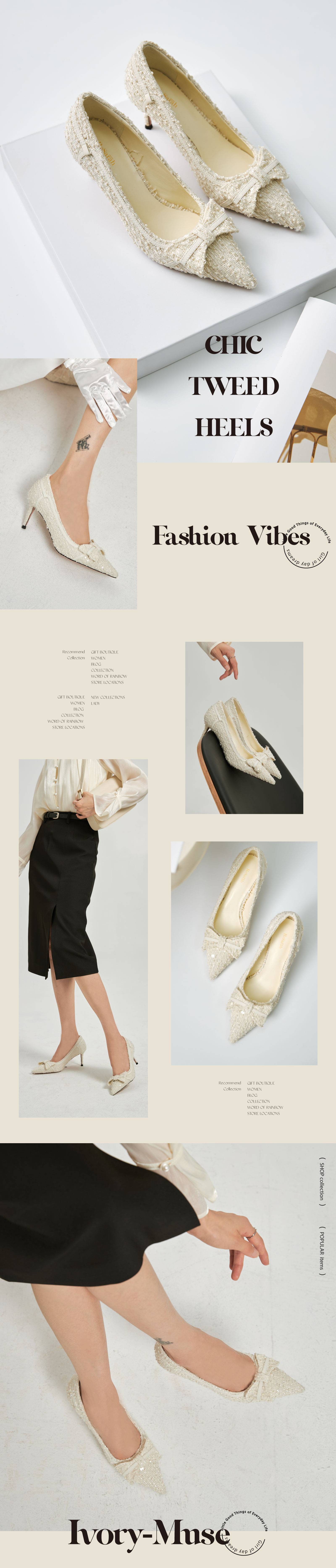 法式日常濾鏡-小香風跟鞋-毛呢白