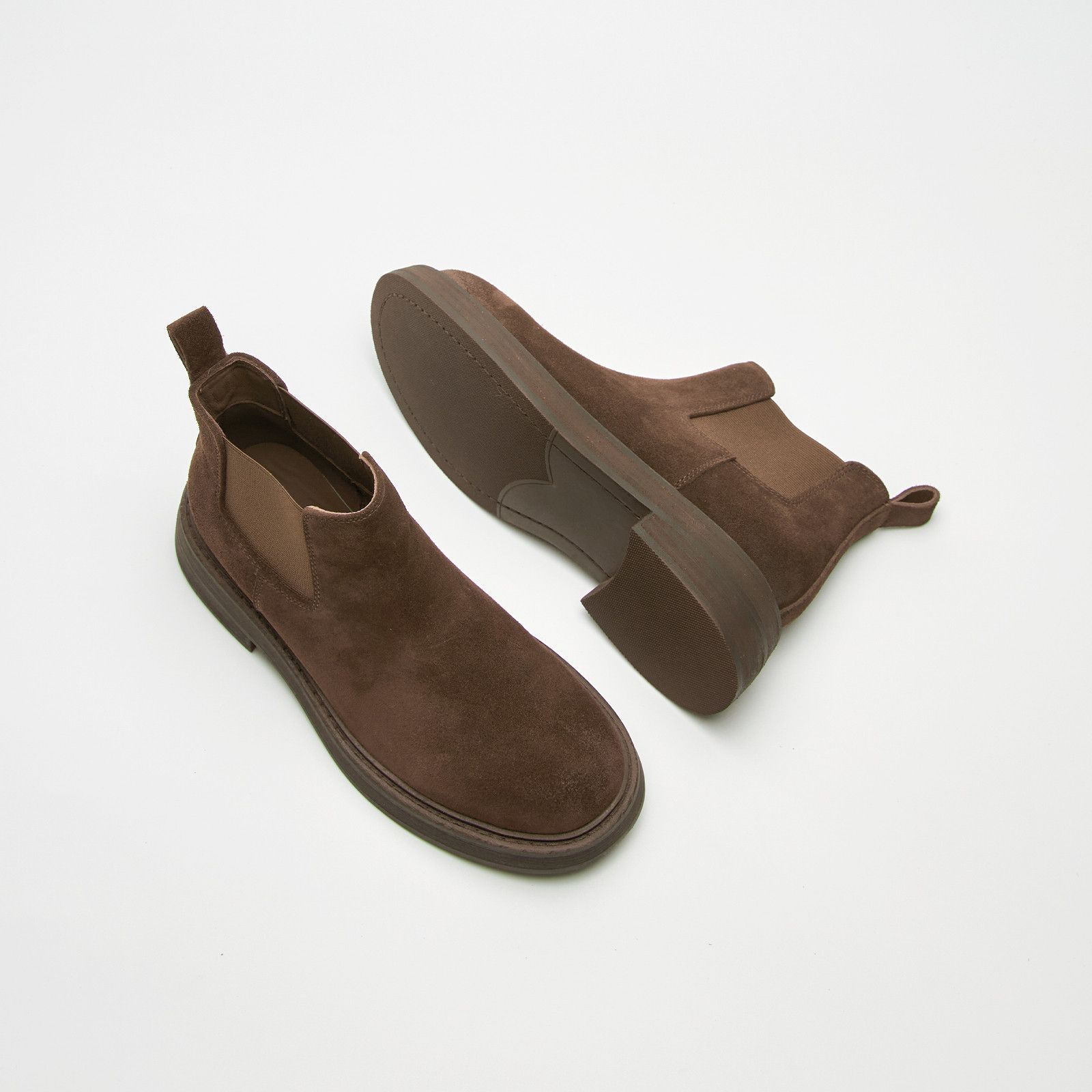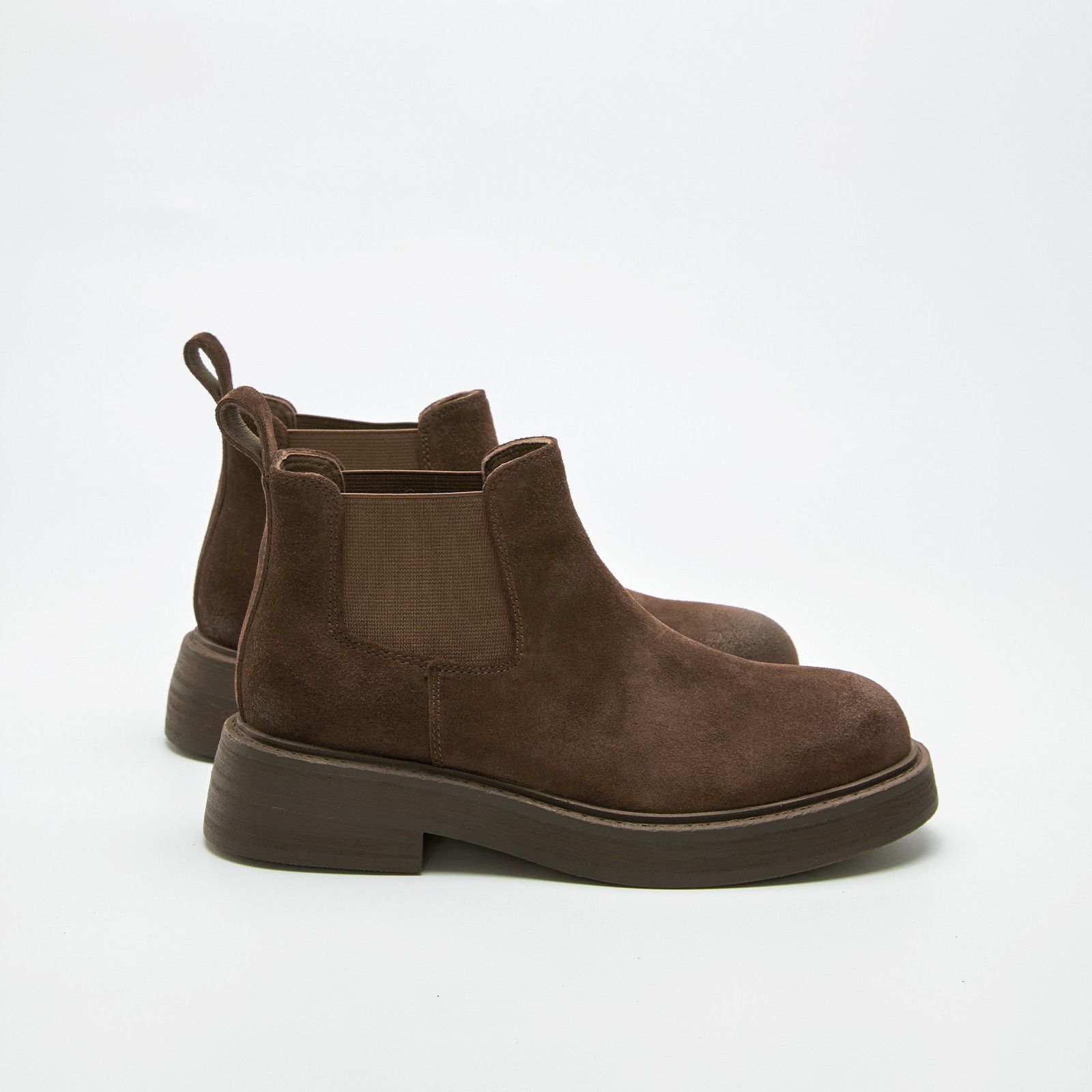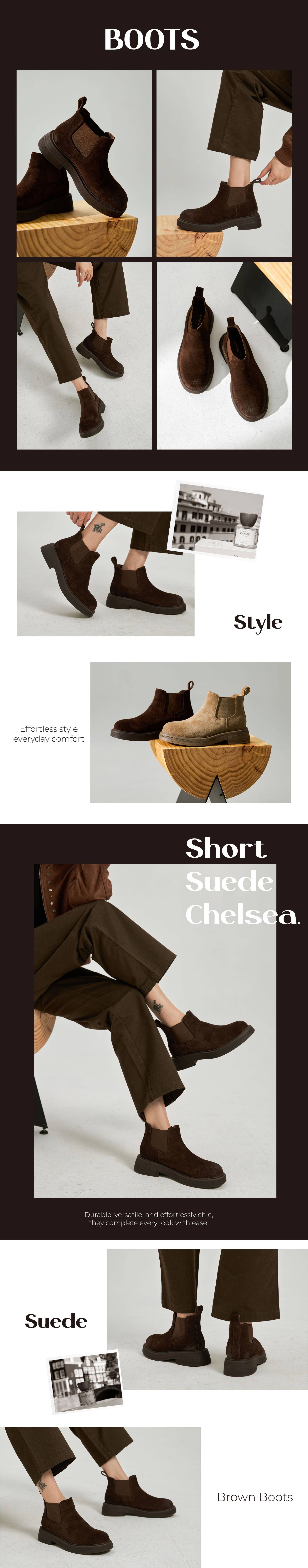 長褲完美搭-麂皮短筒切爾西靴-咖啡色