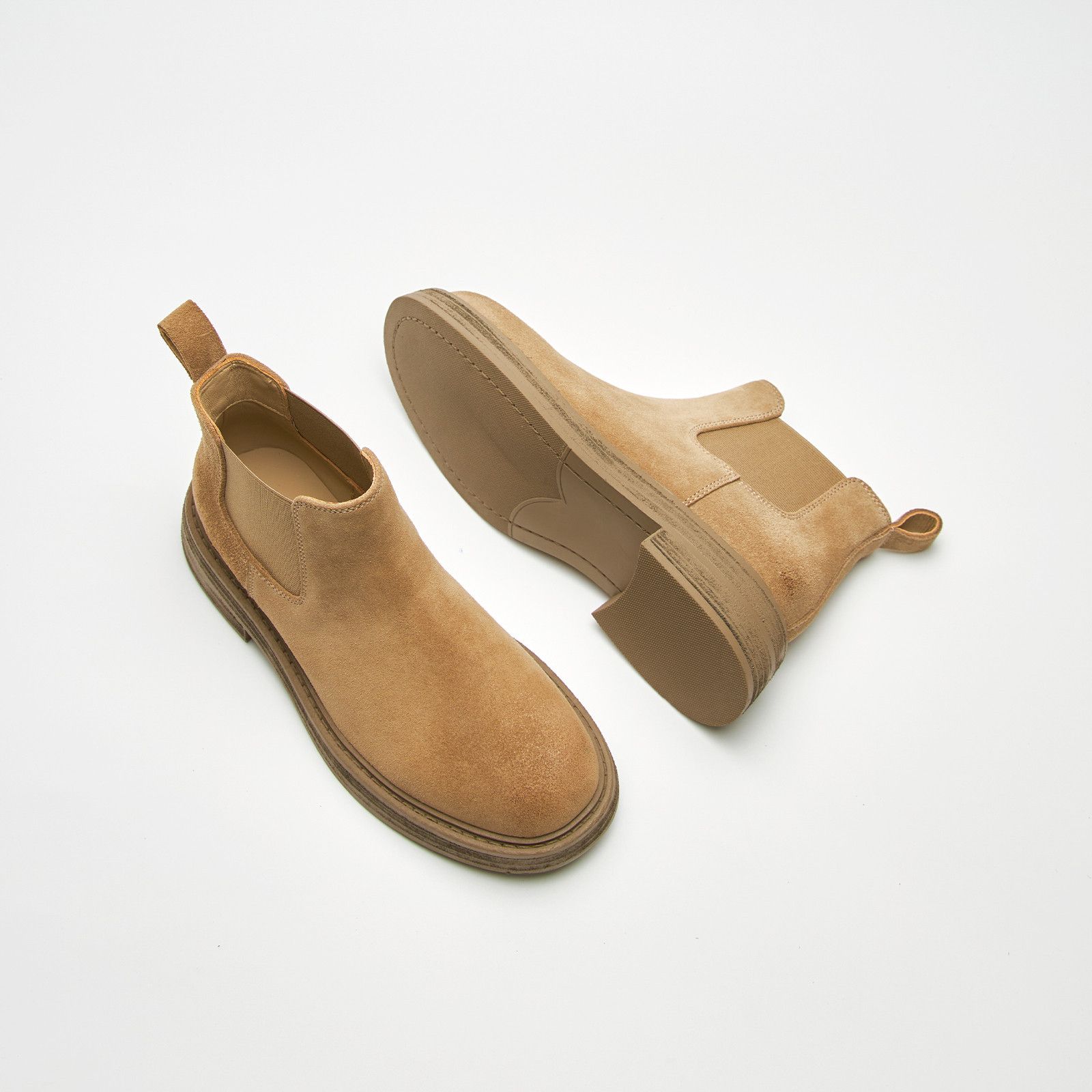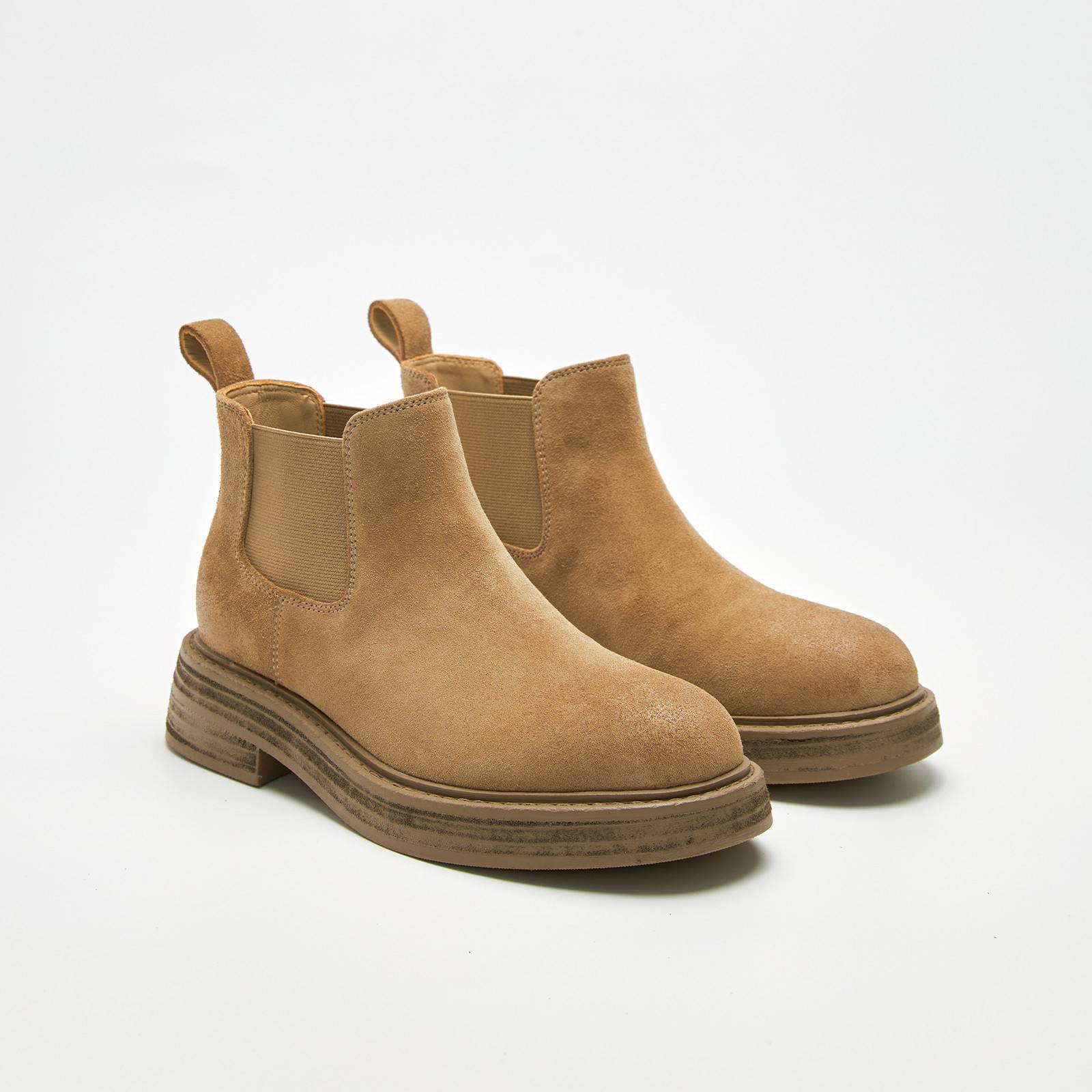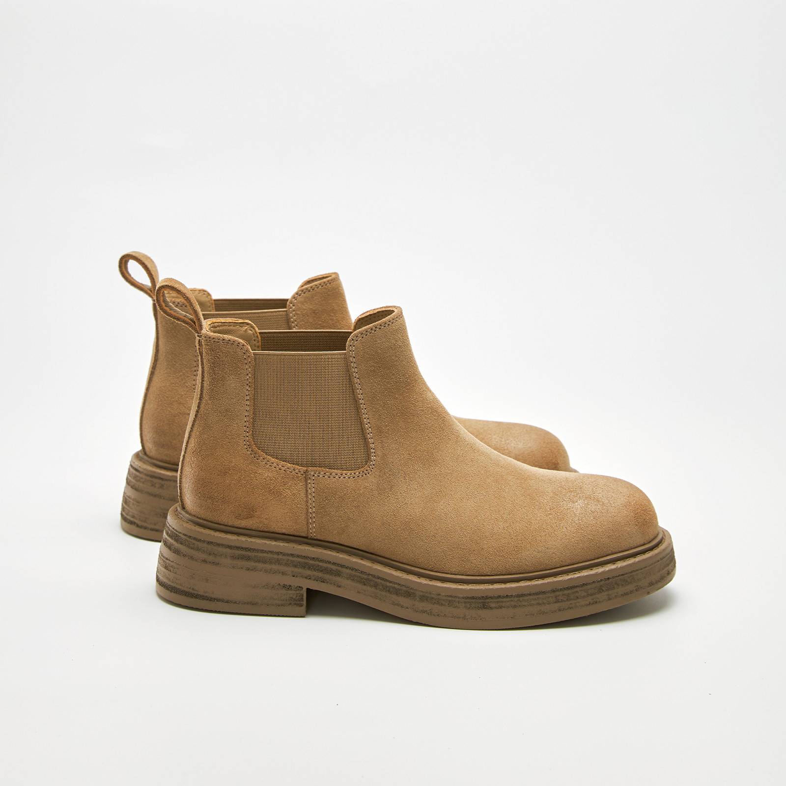 長褲完美搭-麂皮短筒切爾西靴-卡其色