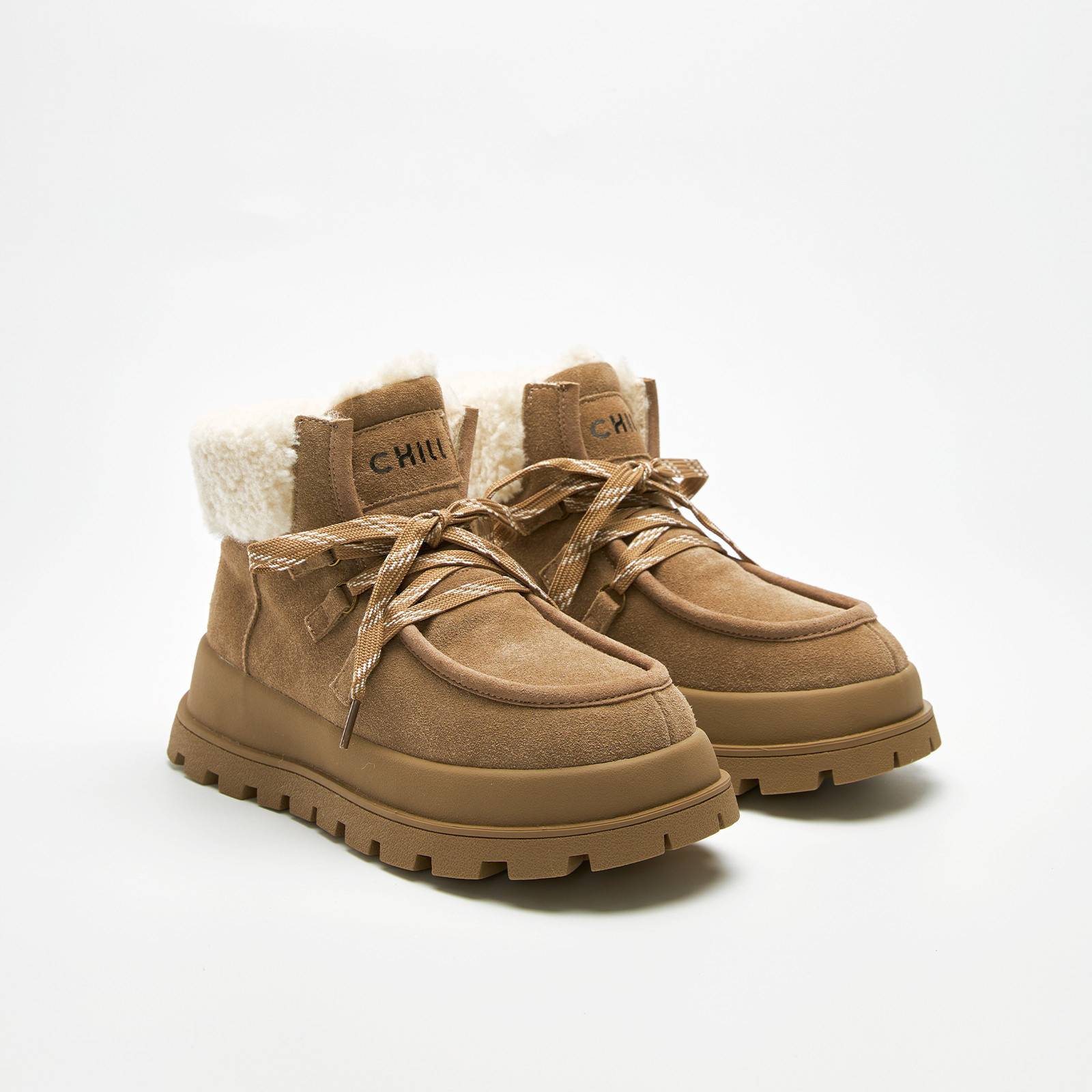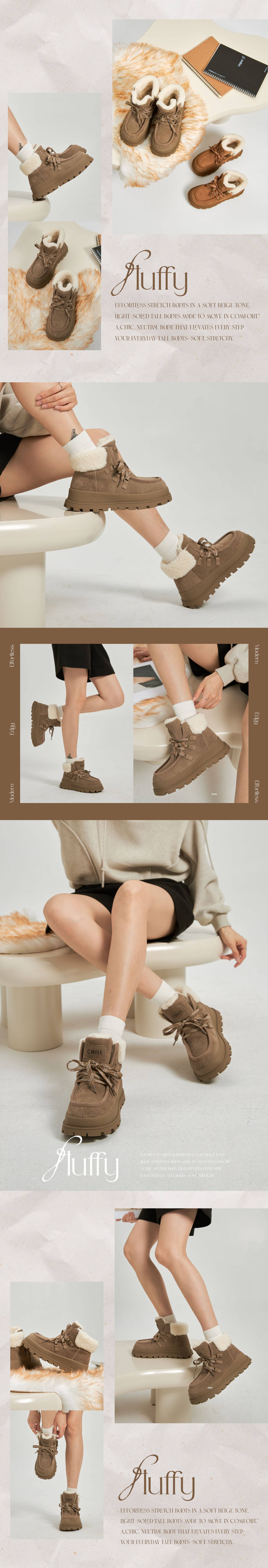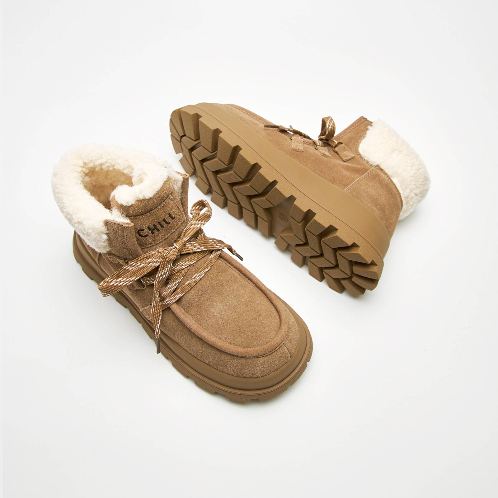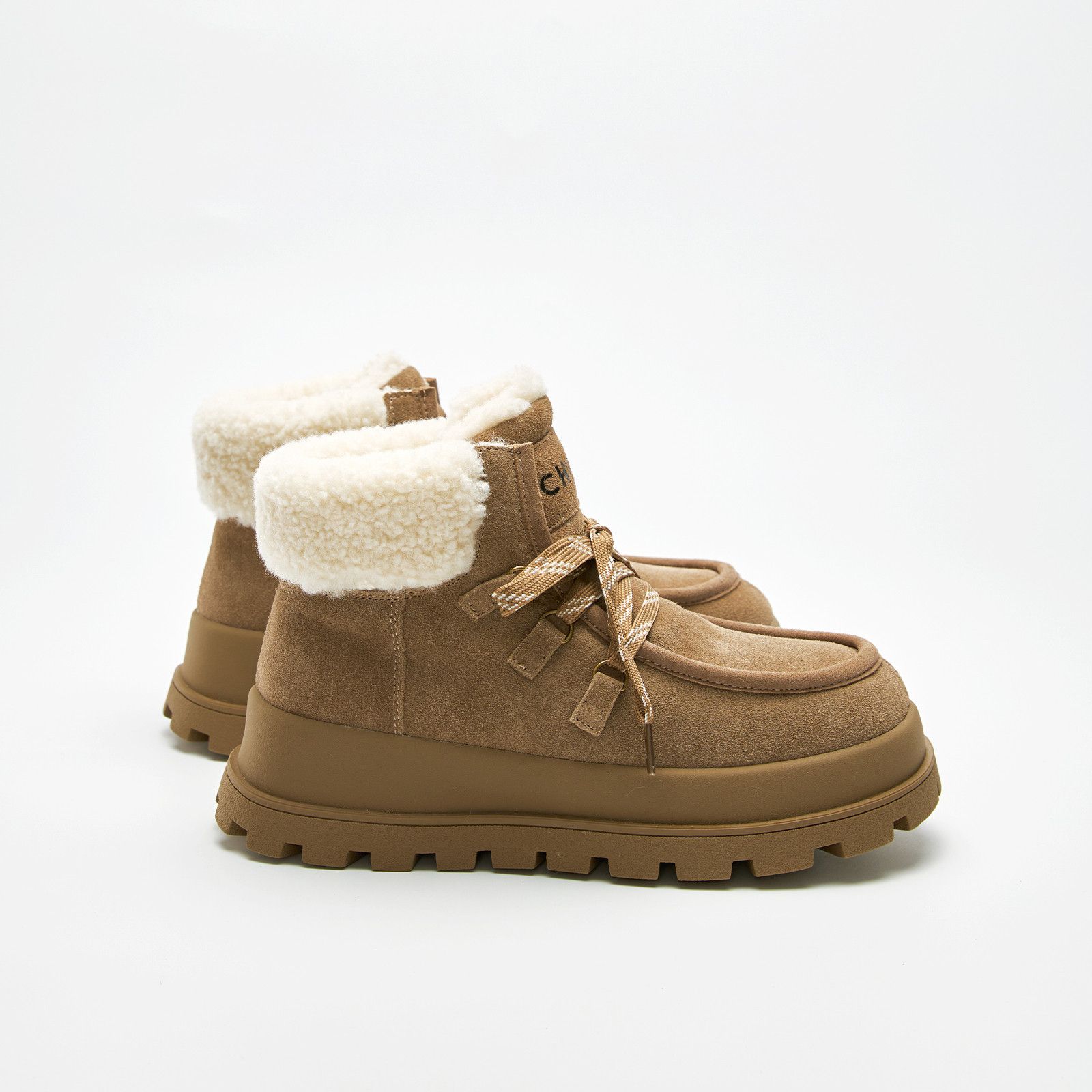 冬天不想離腳-麂皮毛圈雪靴-卡其色