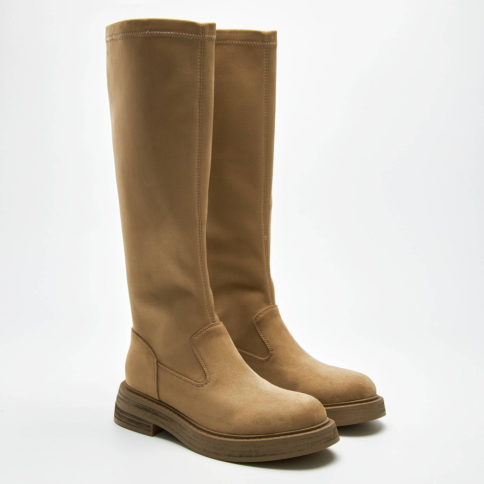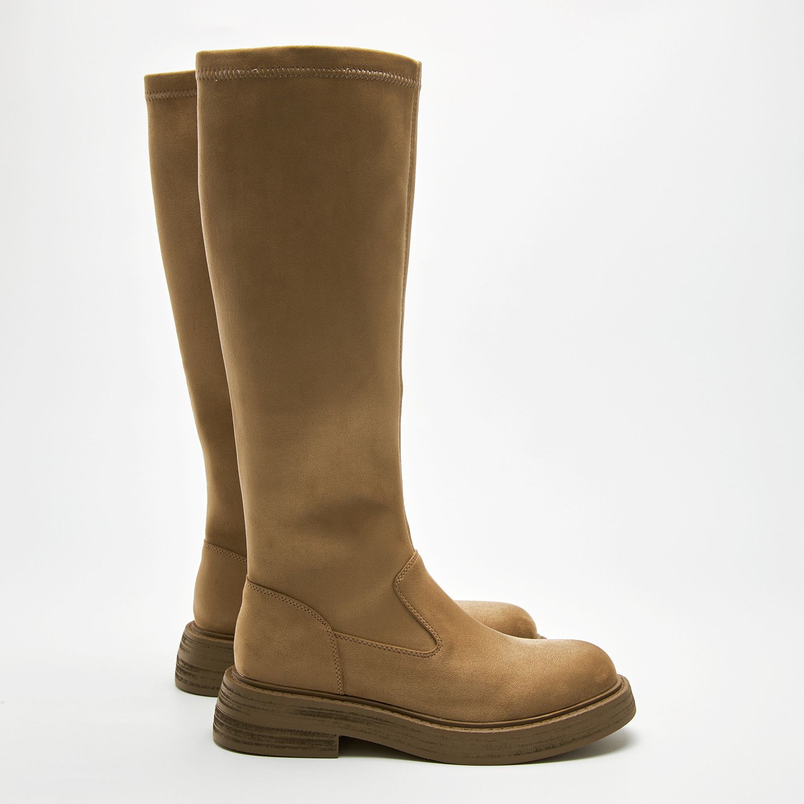 自帶直腿濾鏡-薄底彈力長筒靴-卡其色