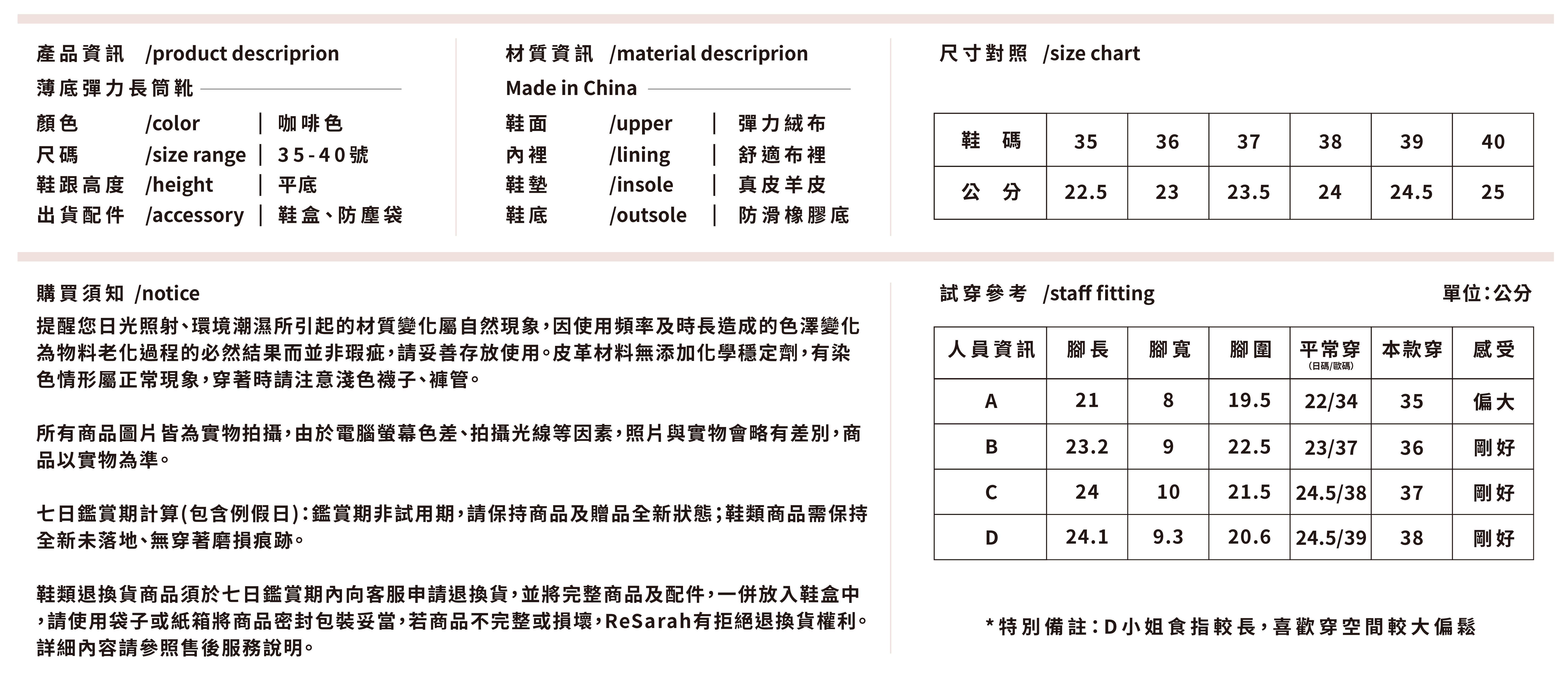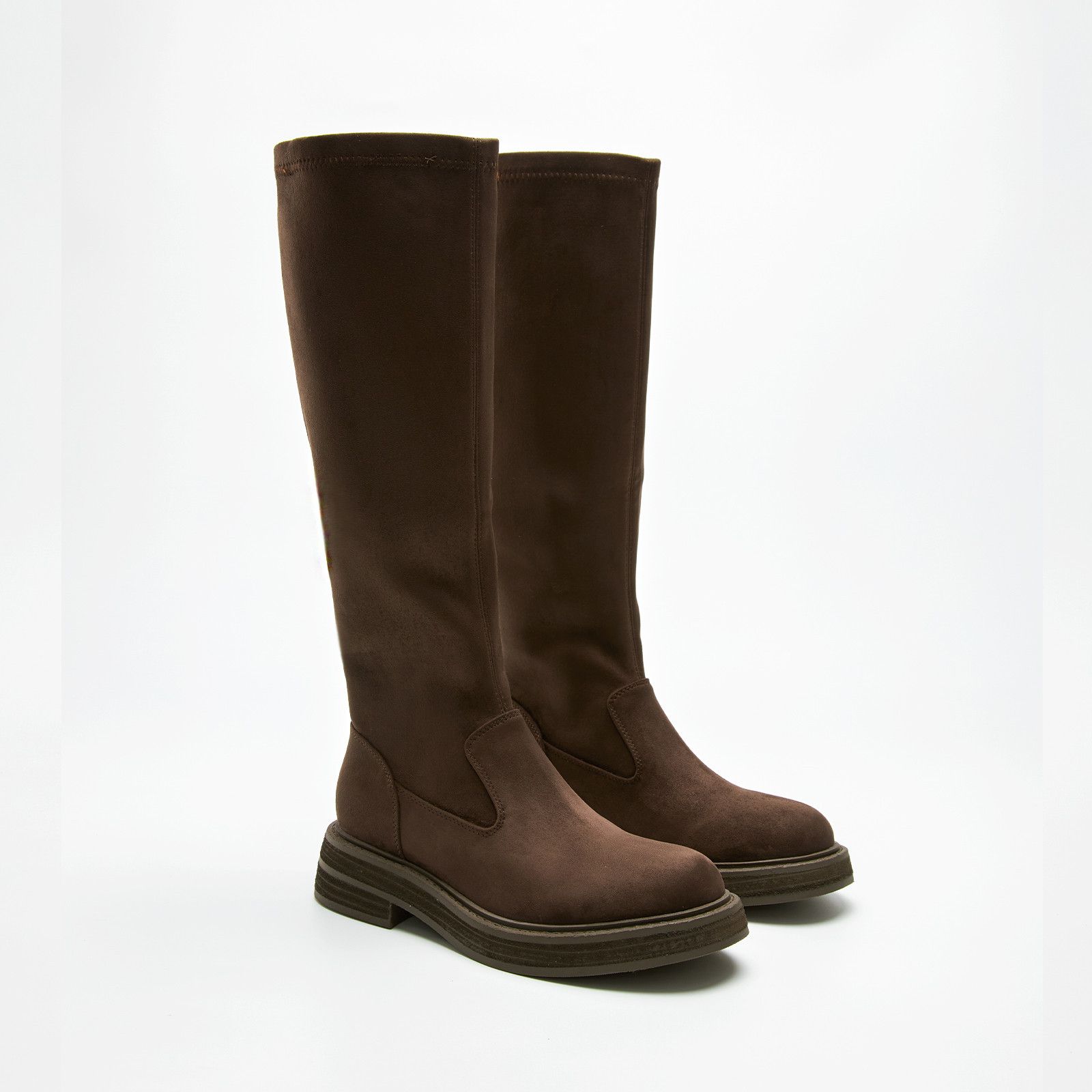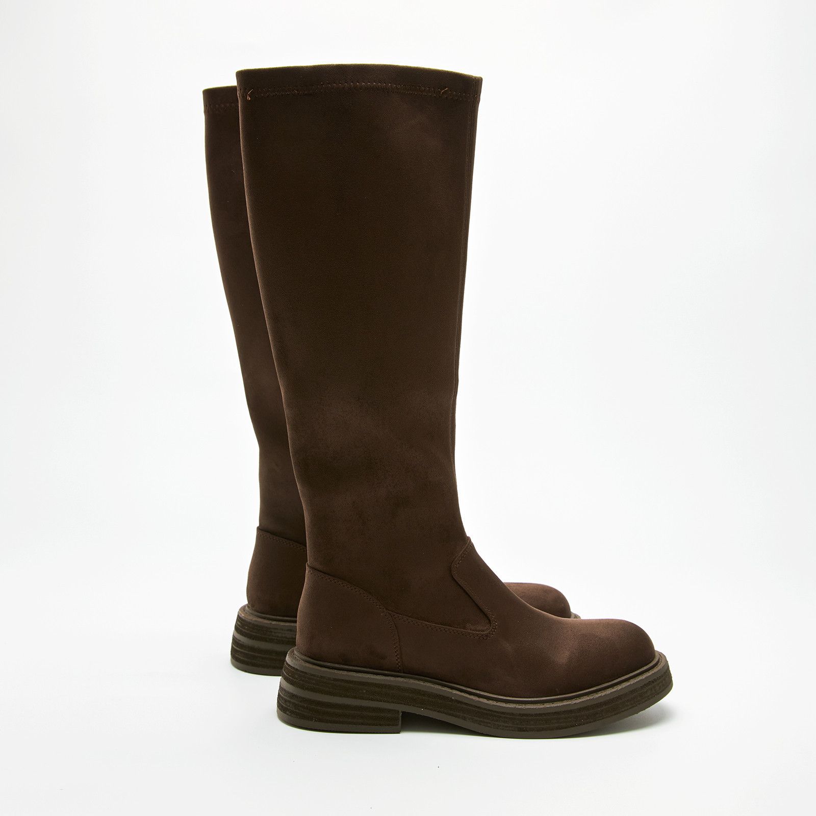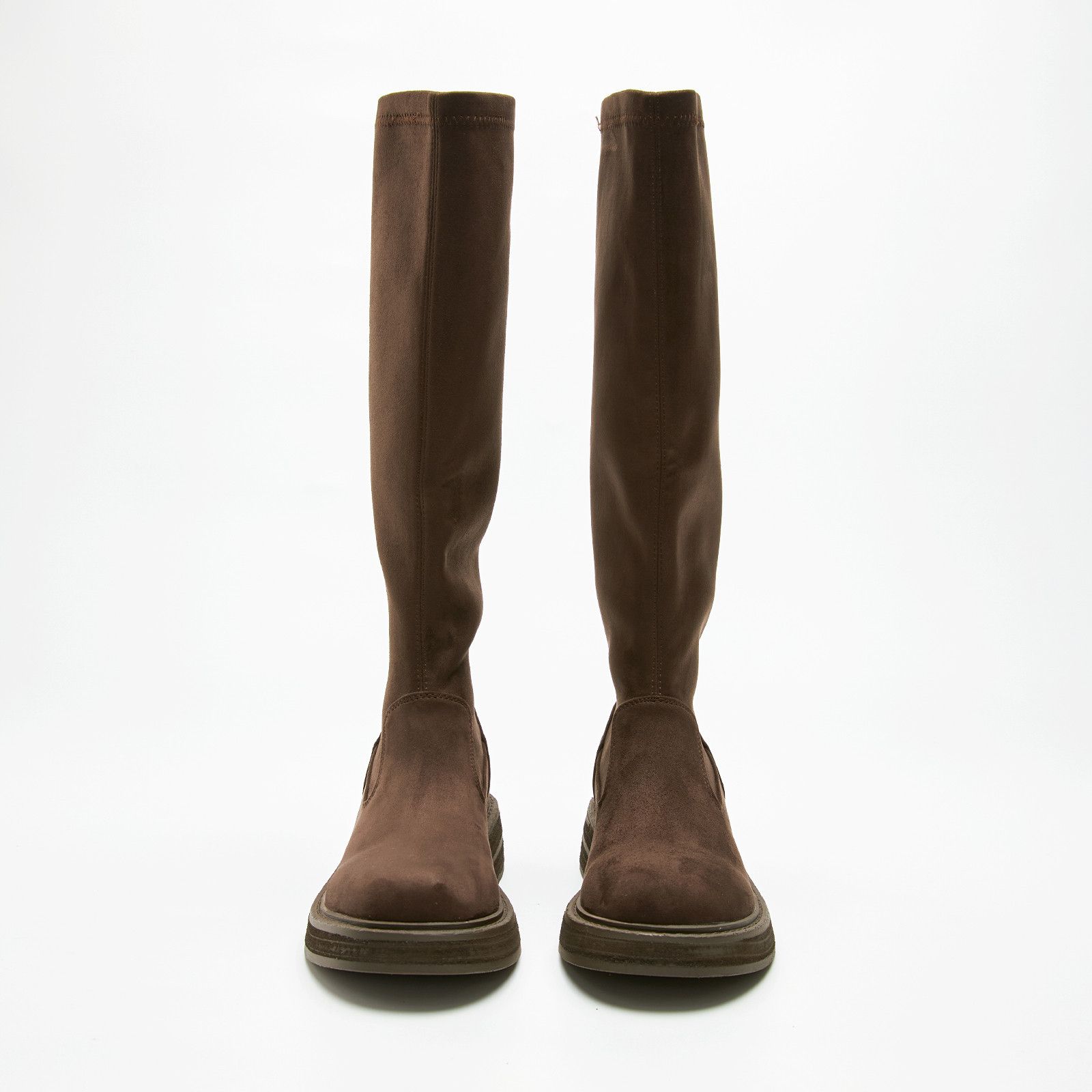 自帶直腿濾鏡-薄底彈力長筒靴-咖啡色